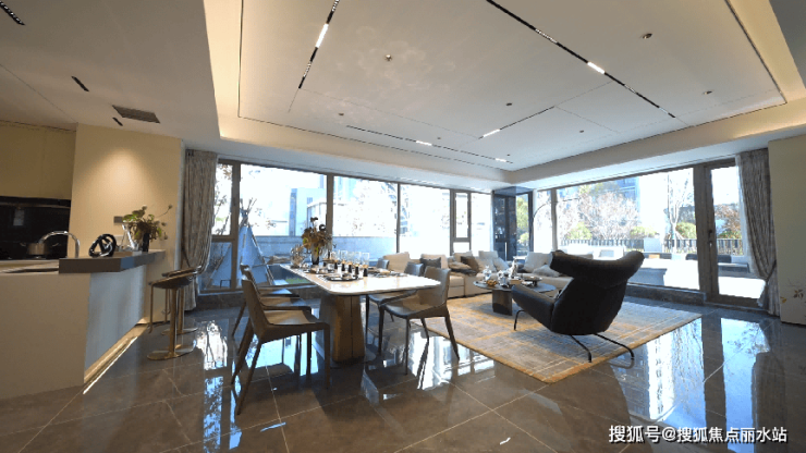 金廣玖華府拥有区域内唯一270°环幕户型,无界视野带来全新居住体验。该户型客厅与餐厅、厨房形成贯通式布局,不仅能够满足高净值人群的社交需求,又通过南向主卧的大套房设计,实现了私密性的极致提升。