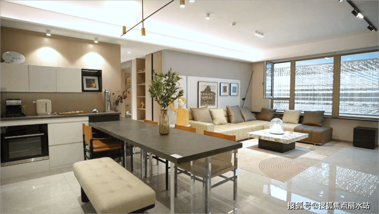 此外,项目120平户型为青年精英家庭提供了未来生活范本,大长条桌的留白设计,将家庭成员间的陪伴与互动充分发挥。