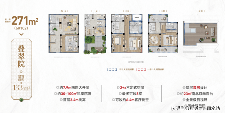 借助四代宅优势,建面约158㎡联排,实得面积达到275-350㎡;建面约133㎡的小联排,面积顶格赠送,更是达到实得面积257-330㎡,最大得房率超过了245%。真正的“买一送一还不止”,全苏州罕见!