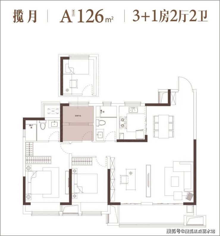 建面约126㎡3+1房2厅2卫户型,让生活尺度实现进一步的跃级。