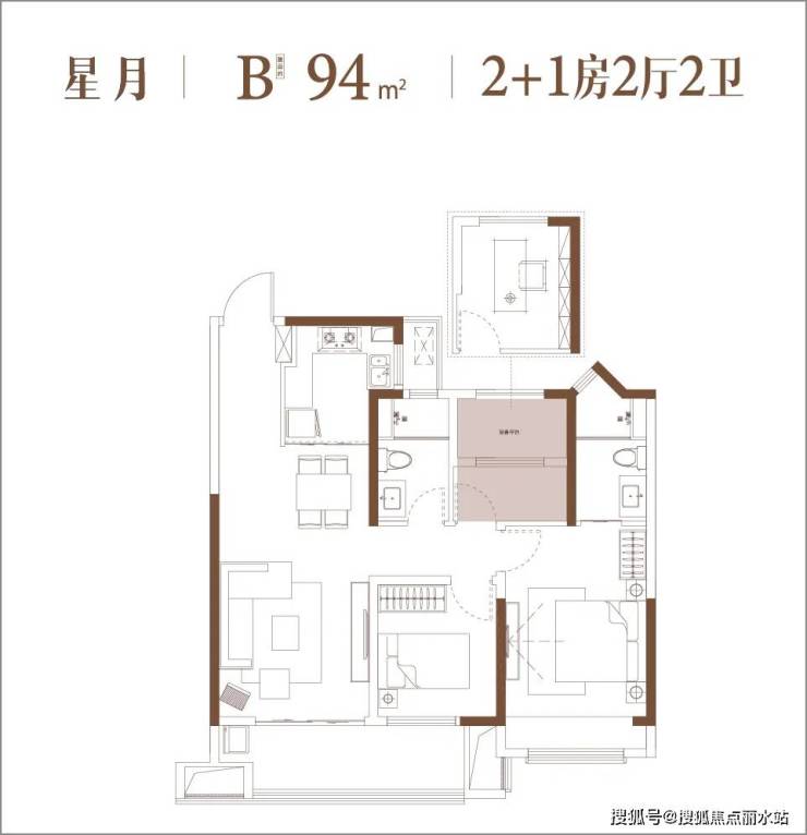 在94㎡的尺度上,蓝城春江明月创新做到了尊享主卧套房设计,包含起居室、衣帽间、独立卫生间等,为首次置业、首次改善人群带来私密而舒适的空间。