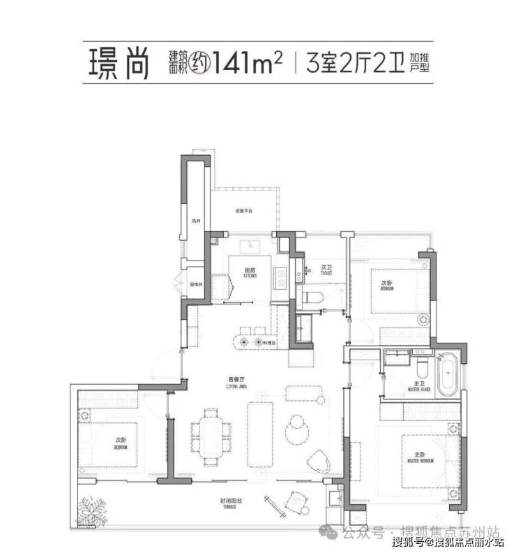 作为区域内开创性的高级改善作品,用起步便是建面约134m²的产品,对同类产品形成跨维压制,将自己的起点,置放在别人的天花板;