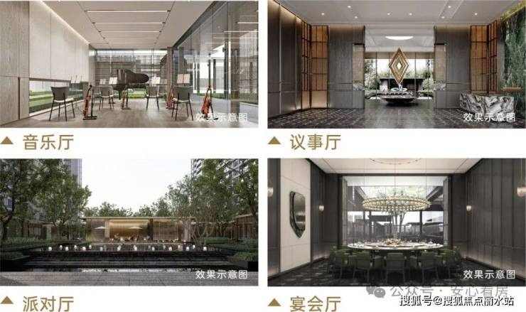 项目将酒店式社交场景融入社区配套,把“私域会所体验”融入主题架空层。三馆四厅”的超配主题空间,构建更有温度的“菁英社区”。
