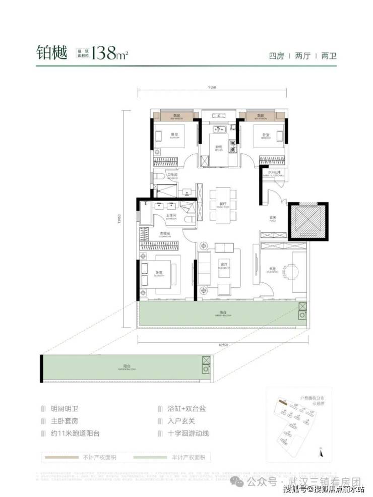 户型得房率超95%,这意味着,138㎡户型的套内空间堪比其他项目160平+高层类产品。