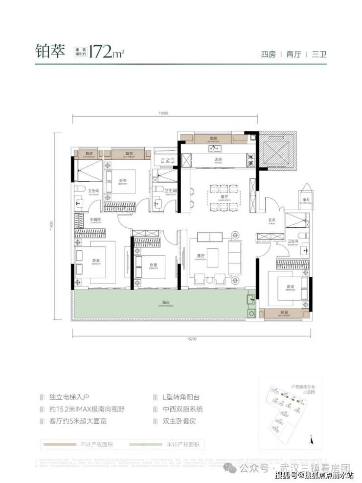 建面约172㎡的产品,大四房设计,真正的“孤品级”洋房。