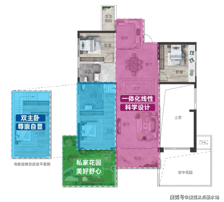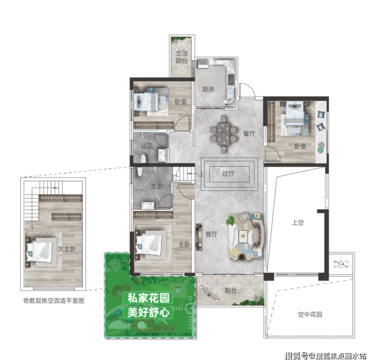 值得一提的是,该户型还赠送挑高约6米的超大私家庭院。这片空中庭院,宛如一方梦幻天地,让家庭微农场的设想照进现实。