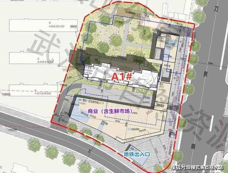 A地块还带有一个2000㎡生鲜市场,在地块的东南角还有一个地铁出入口。