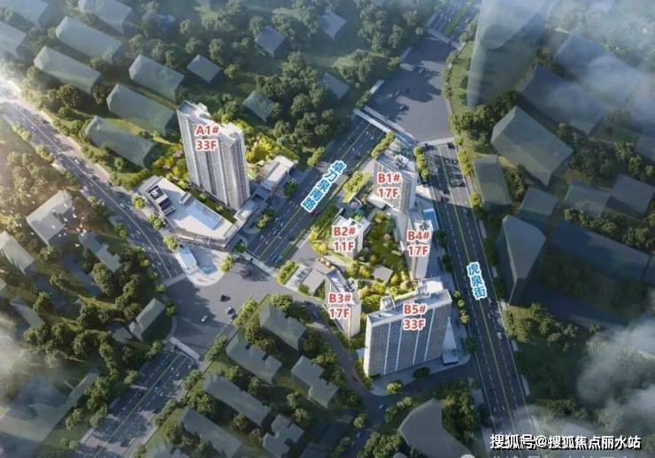 项目一共有A、B两个地块。其中A地块仅有A1#一栋楼,33层,2个单元,位于卓刀泉南路西侧;B地块有5栋楼,其中B1#、B3#、B4#17层,1个单元,B2#11层,1个单元,B5#33层,1个单元,位于卓刀泉南路和虎泉街交汇处。
