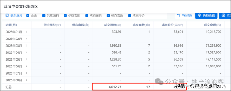 我们先来看一组销售数据,万达御湖汉印在售产品面积227-310㎡,2025年精装销售均价35800元/㎡,月均销售仅2套。