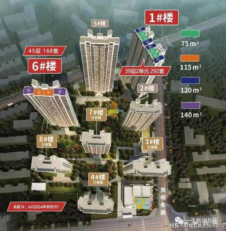✅1号楼:39层,两个单元,2梯4户,中间户75平,边户120平