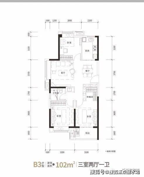 ✅3号楼:33层,一个单元,三梯六户,中间户75平,边户104㎡