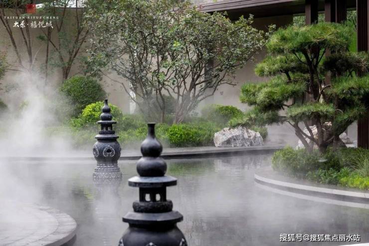 太原禧悦城,匠心打造悦享诗意园林,园区配置“雾森系统”,每日会产生大量的雾气,人行其间,好似仙境如梦似幻。