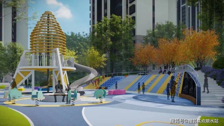 项目以“一环 两轴 多点”的设计理念,所打造的多功能悦享社区内含社区会客厅、儿童天地、运动汇、健康跑道、清新草坪等多重功能区域。