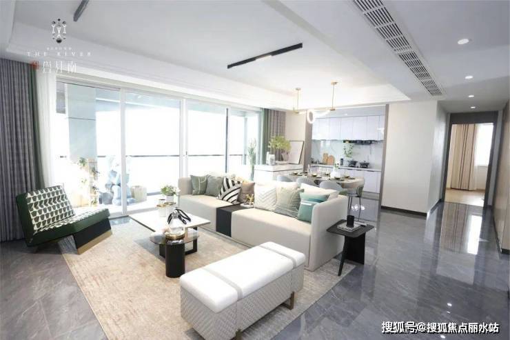 B1#楼傲立于一线临江景观组团,超阔宴会式餐客厅,连接约6.8米面江阳台,最大约18米的观江面,瞰江视野零遮挡,万里浩瀚风光,成为家的私藏。