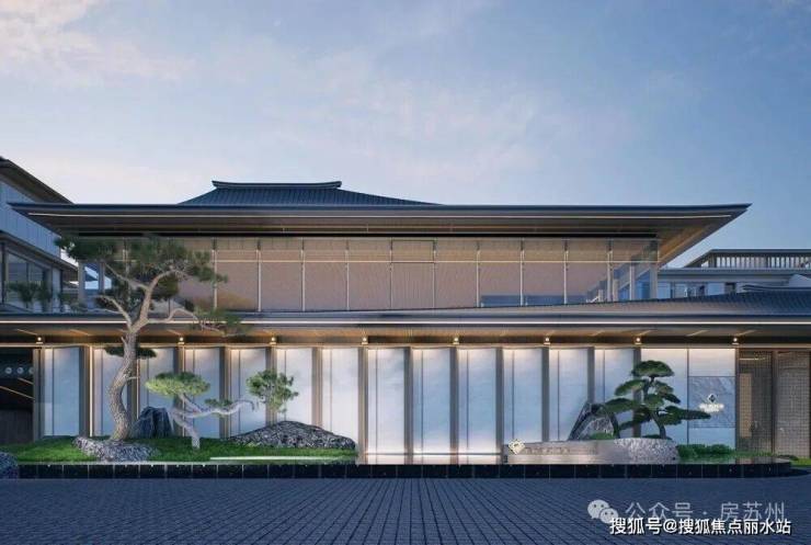 外立面延续传统宋式建筑的重檐、撺帘杆等元素,融入现代视觉手法,搭配大面积玻璃,豪宅感强烈!