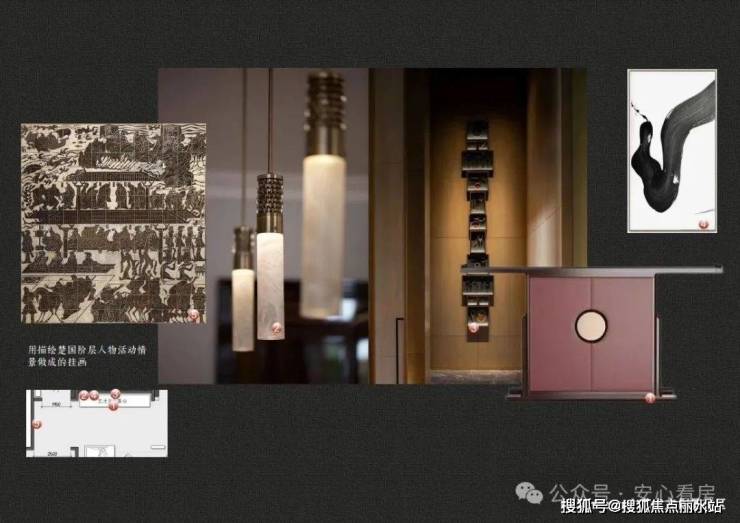 大堂:效仿编钟,墙面的装饰挂画,沿用楚人的生活画面,古色古香,散发着沉稳、厚重的韵味。