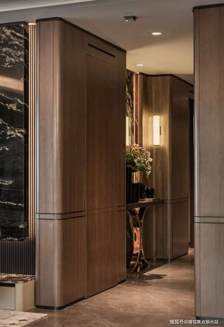 地面则匠心独运,采用双色石材拼接工艺,于沉稳中勾勒出现代韵律,让人眼前一亮。从踏入的那一刻起,每一处细节都在诉说着不凡的品味,令归家之路,成为一场极致的视觉盛宴与尊贵体验