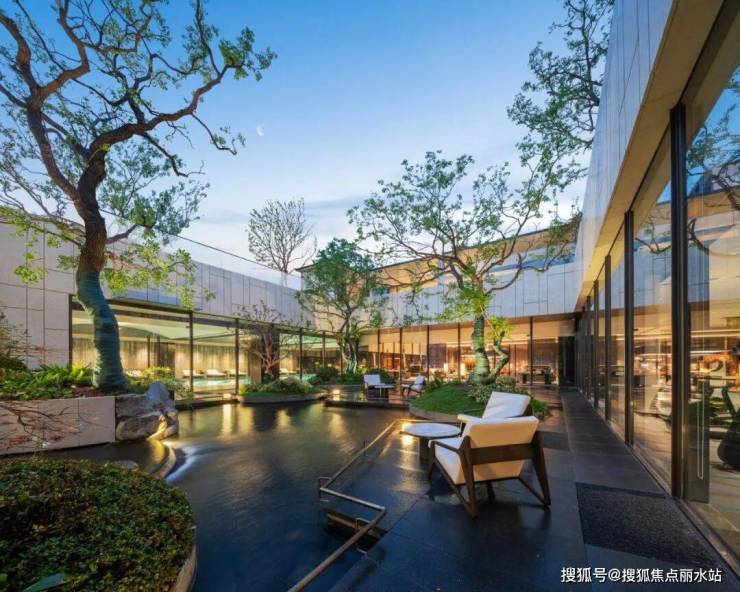 视线拔高再看,四季庭院、琉璃水院、艺术光庭、石韵流瀑、镜水浮桥、九庐书屋等,全部展现在眼前,层次太丰富