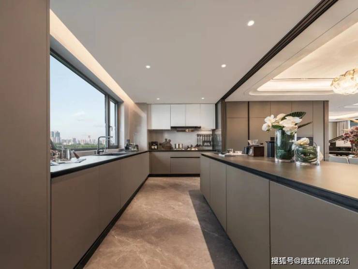 全屋还采用智能家居,通过开关面板控制,可实现语音控制。全系精装交付,采用国际一线品牌,厨房中西双厨设计,打造多重拉篮收纳空间,配置独立奢石岛台、西橱柜,全面超越竞品楼盘