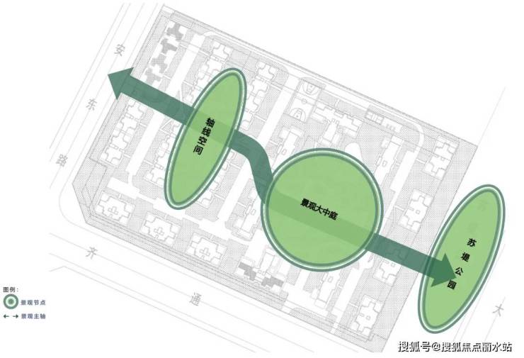 领地·樾园小高层区打造轴线感仪式空间,大高层区打造洋房核心大中庭空间,与苏堤公园和岷江形成景观渗透,第一界面沿苏堤公园横向布置花园洋房,最大化利用公园景观;