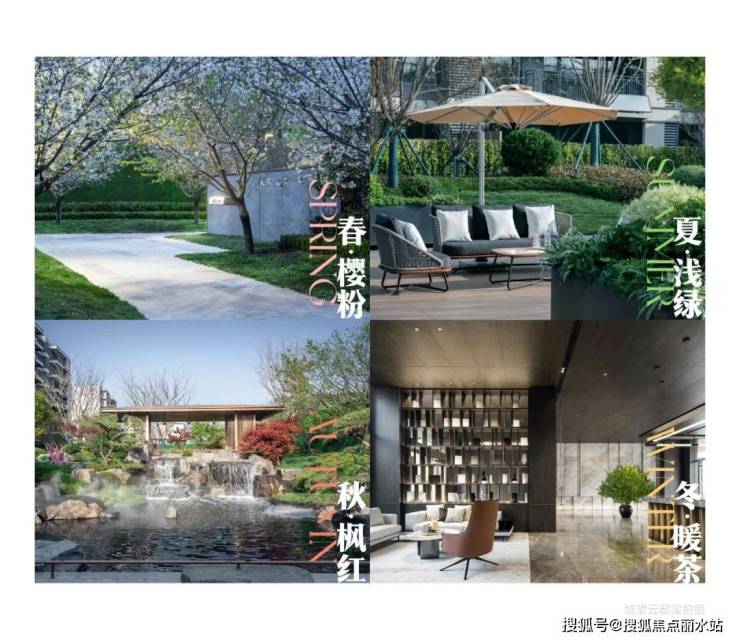 城望云起园林宛如上帝打翻了调色盘,樱花主题景观步道、面积约800㎡开阔绿地、室外会客厅、酒店式归家大堂点亮四季不同美景。