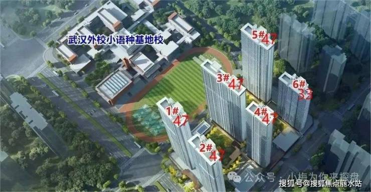 根据规划,项目占地面积约7.43万方,总建筑面积约24.2万方,其中住宅约11.7万方,学校约3.7万方,整体容积率2.14,该项目总共包含6栋33-47层的高层、超高层住宅,总户数964户,户均建面约121㎡。该项目打造准四代产品,该项目最大亮点就是自带一所九年一贯制公办外语特色学校,即武汉外国语学校小语种基地学校。该学校已于2025年3月顺利通过主体结构验收,预计2025年9月投入使用。该学校小学36班,初中30班。所以这个学校的规模是非常大的啊。