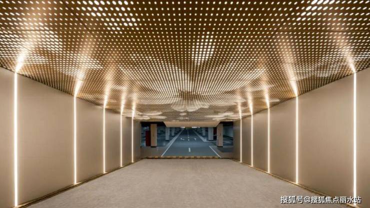 负一层的通车区域,顶部采用冲孔铝板吊顶,也是嘉兴已交付楼盘的车库顶配标准!