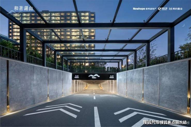 和著湖山精装修地下入户大堂,通过瓷砖与金属元素的组合,搭配柔和明亮的灯光,还有府院式移门,将极简美感、人性化、高级感完美融合。