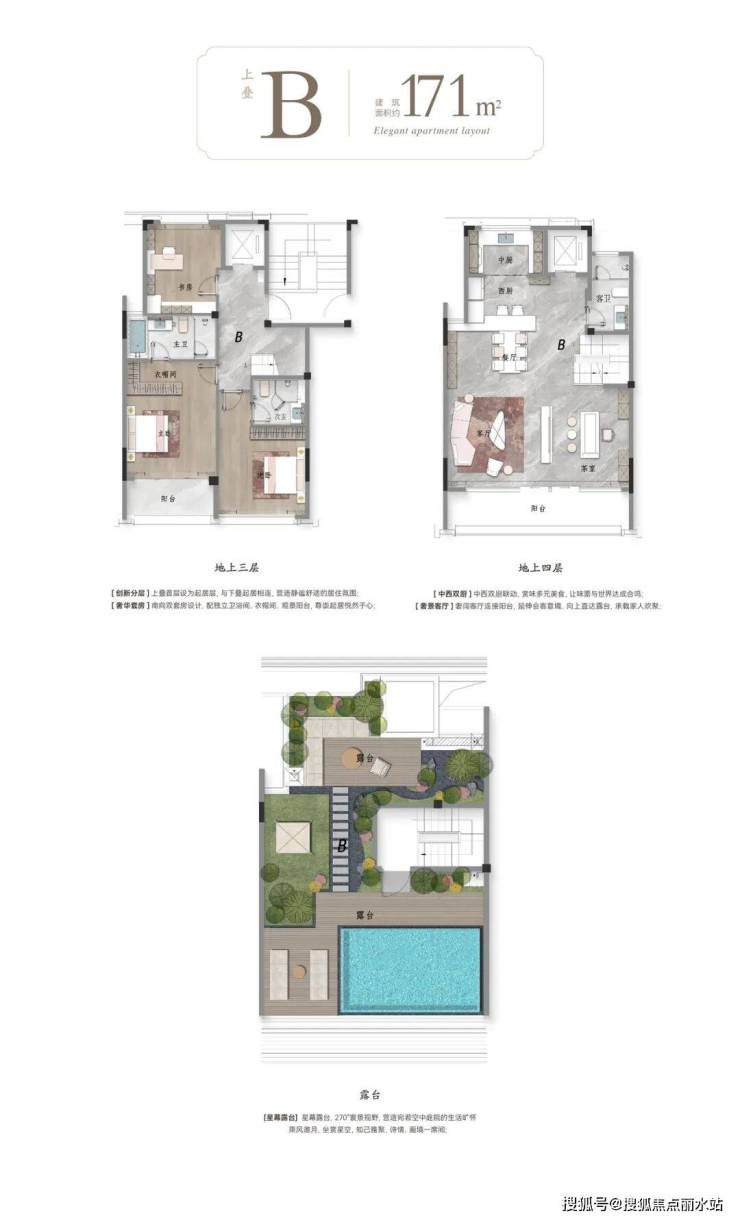 下拥立体阳光庭院 上揽顶层泳池