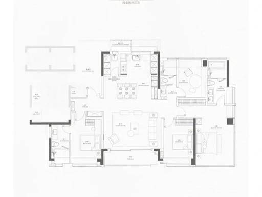 建面约 188㎡四房两厅三卫,是项目的终极改善户型,以奢阔空间与高端配置,定义城市顶奢人居标准。户型采用动静分区与双洄游动线设计,儿童房和老人房分置走廊两端,保障不同家庭成员居住的私密性与独立性;宽景阳台俯瞰社区园林与城市景观,视野开阔;主卧为豪华套房设计,配备独立衣帽间、双台盆卫浴与观景飘窗,彰显主人尊崇身份。四个卧室功能齐全,可满足多代同堂或多功能空间需求,厨房操作空间充足,可搭配西厨岛台,提升生活品质,整体户型奢阔通透、布局考究,将空间美学与居住舒适度完美融合,是城市精英终极改善的理想之选。