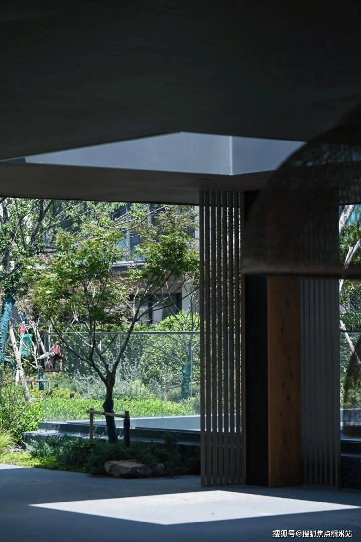 由约600㎡无雨归家连廊构筑的“山林雅院”,雅致而温馨,中庭花园内则栽种了墨西哥落羽杉林,厚重的景墙与自然绿意相得益彰。