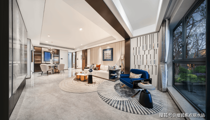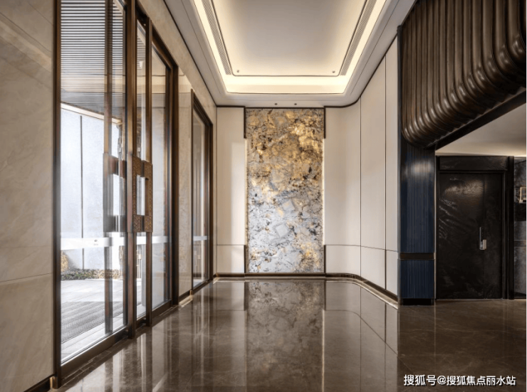 再比如巴西雪山银狐奢石、蓝翡翠岩板、白雪公主岩板、保加利亚灰色密拼地砖……奢石大量运用于公区,与超级豪宅相比都毫不逊色。