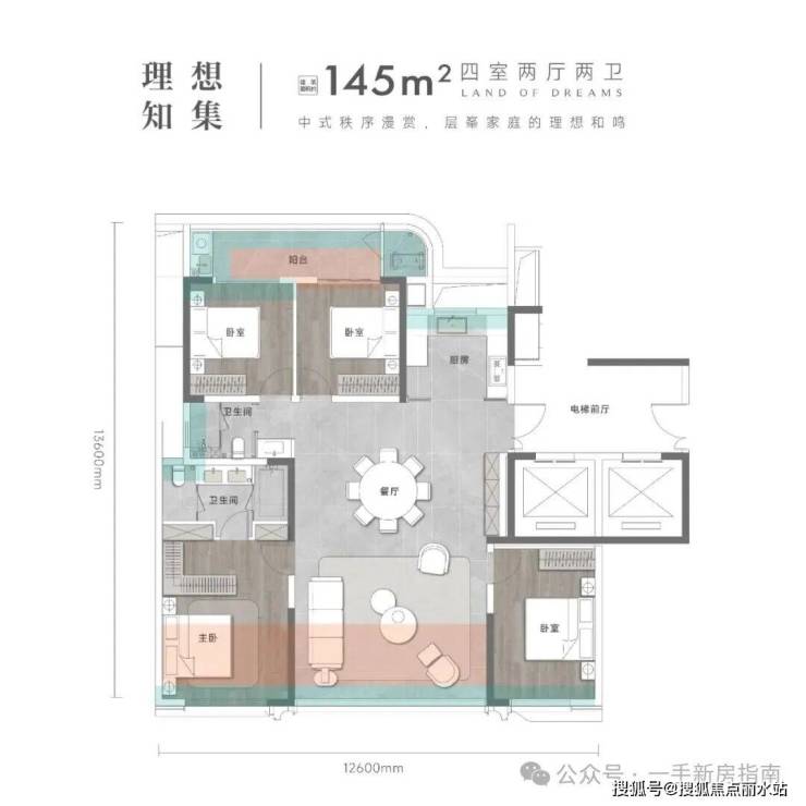阔绰电梯前室可与室内玄关联动使用,南北双阳台解决准四代关于晾晒和卧室尺度的两大痛点。南向双套房,老人、夫妻各有私域,即便三代同堂也能住得舒适。