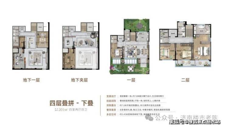 四叠下叠 建面约201㎡(套内181㎡)四室两厅四卫