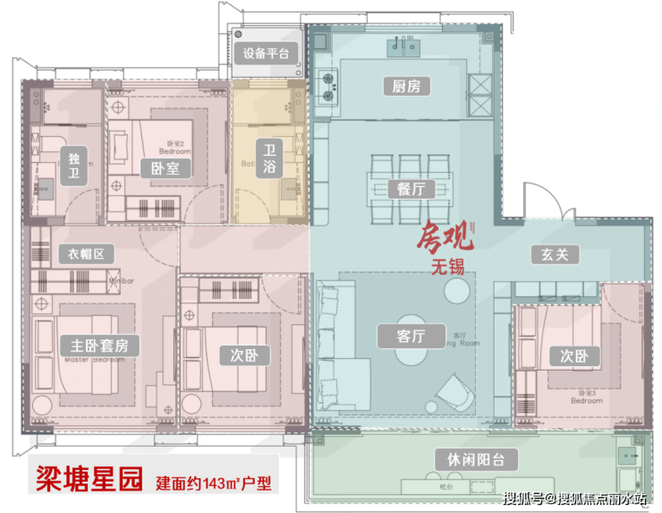 主卧套房自带卫浴与衣帽区,另一间次卧同样配备独卫,形成双套房格局,兼顾两代人居住私密性,细节拉满。