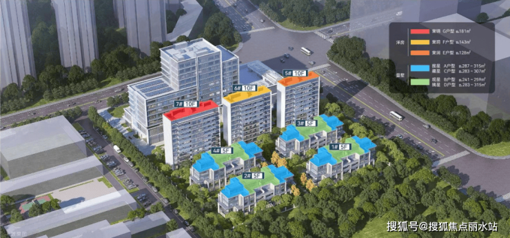 项目定位为“国际酒店+品质住区”,由4幢5F叠墅,3幢10F洋房和1幢13F高端酒店组成,住宅部分仅92套。