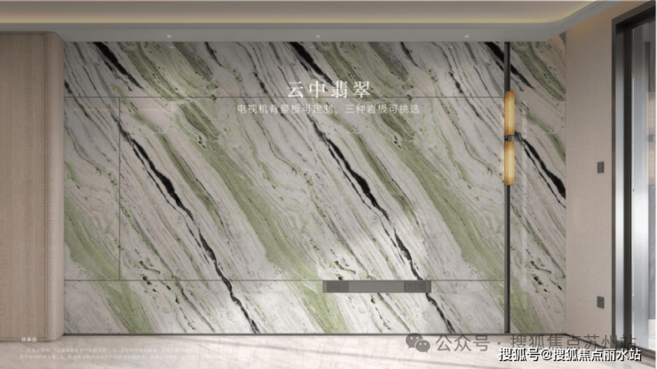 充分考虑业主的个性化需求,在电视背景板提供了新潘多拉、云中翡翠、弗朗明戈金三种结晶釉面岩板选择,成本更高,施工难度也更大。