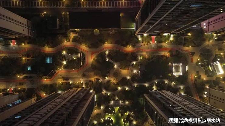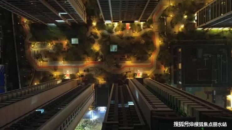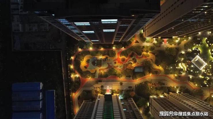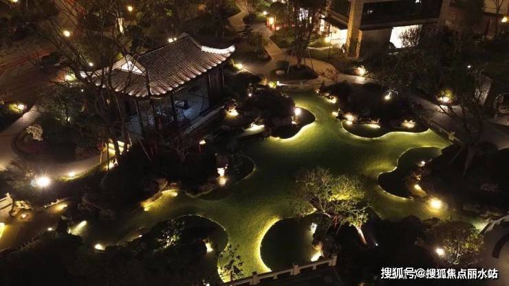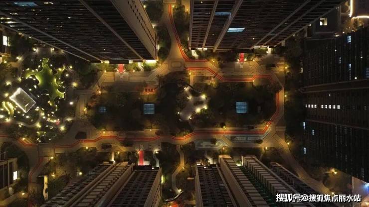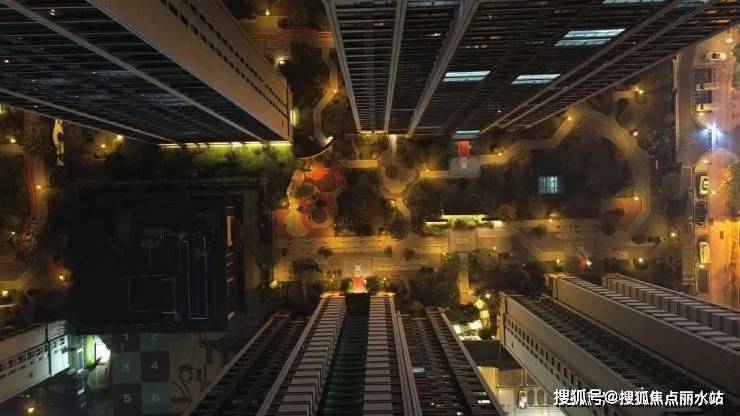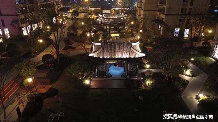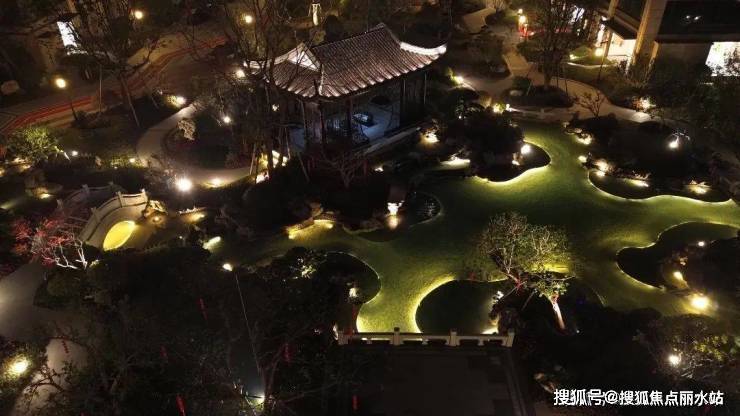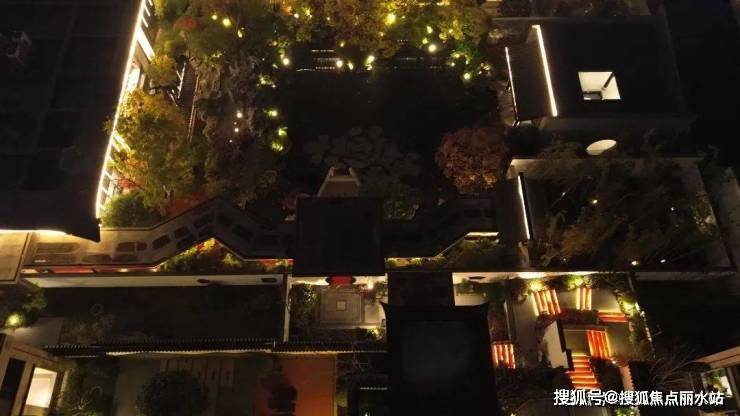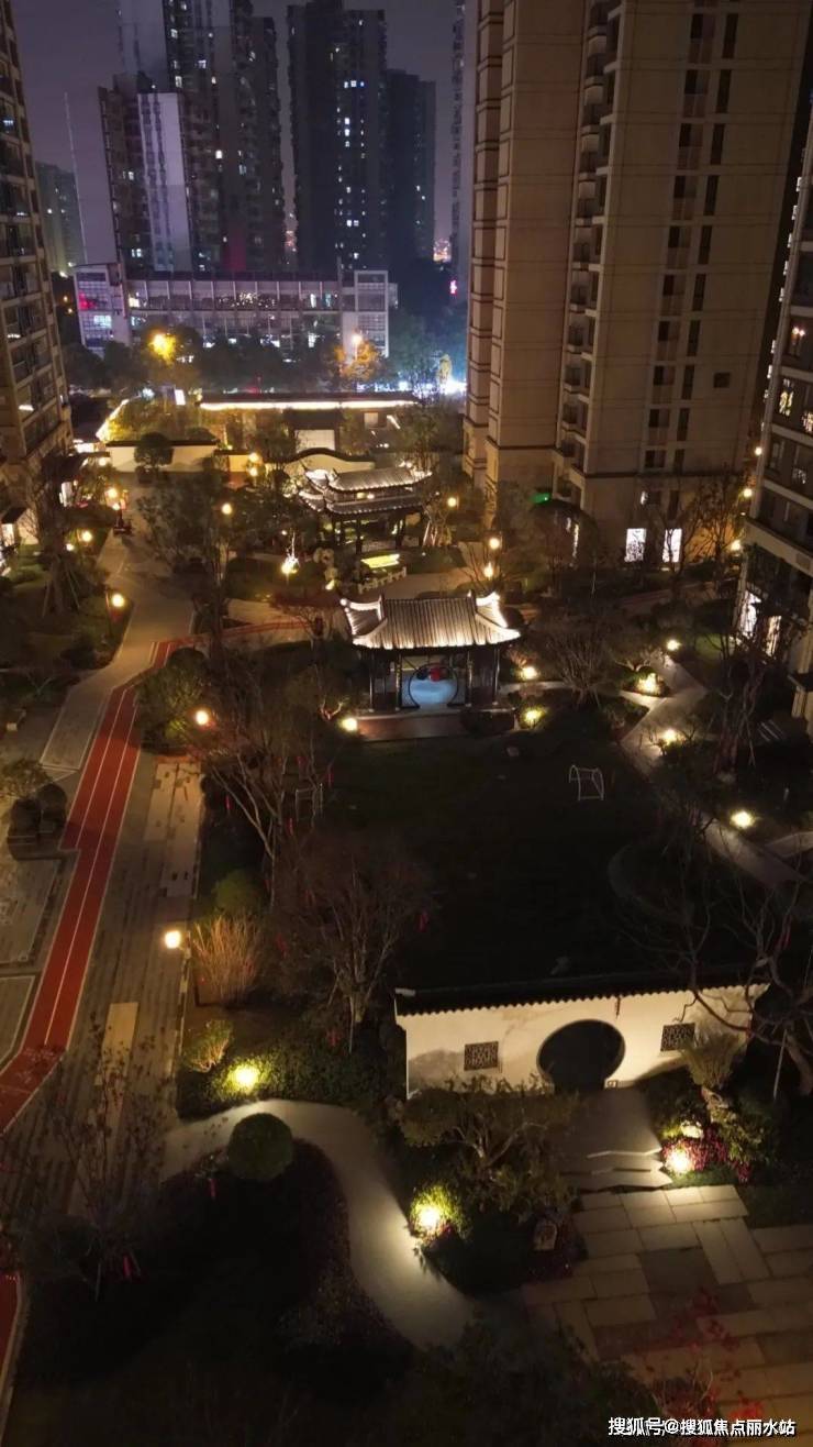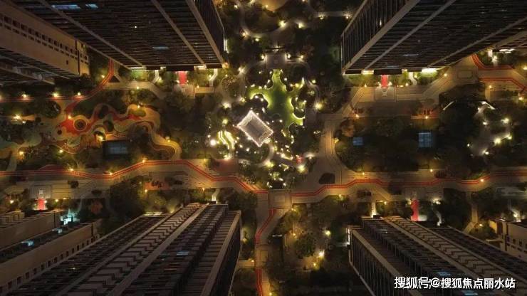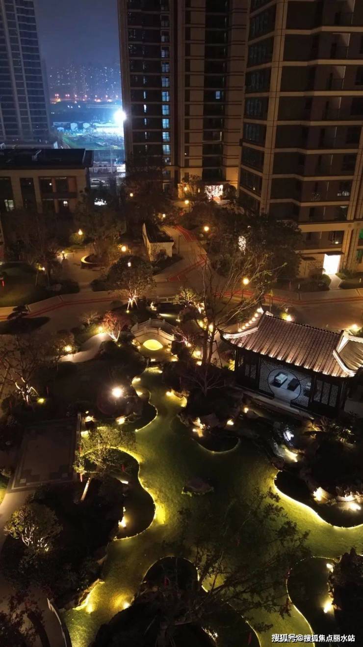长沙建发玖洲观澜小区三大庭景夜景,必然是中心庭景效果最好。