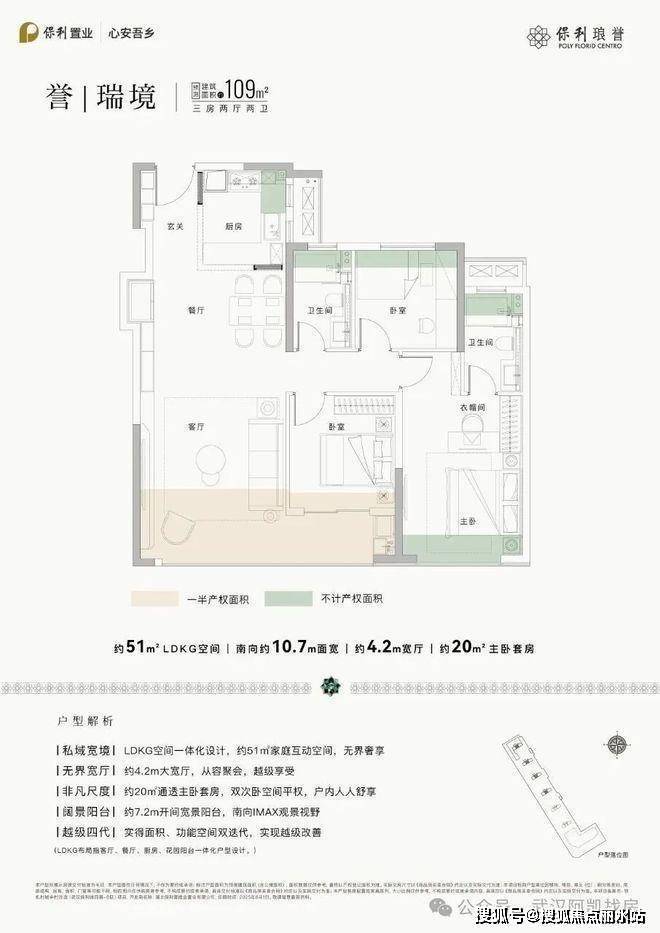109㎡户型:三房两厅两卫,该户型为三房两卫,三开间朝南,入户玄关收纳空间,南向面宽约10.7米,约7.2米的南向宽景阳台,51㎡的动区空间,约20㎡的主卧套房,还是双卧朝南设计。此外,主卧、次卧、厨房有不少全赠送空间。