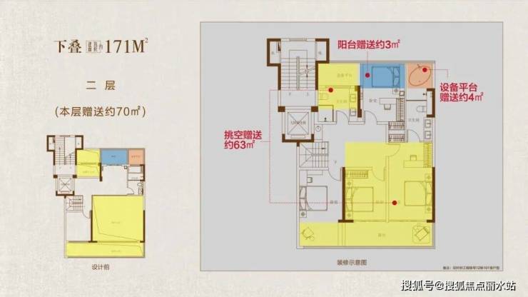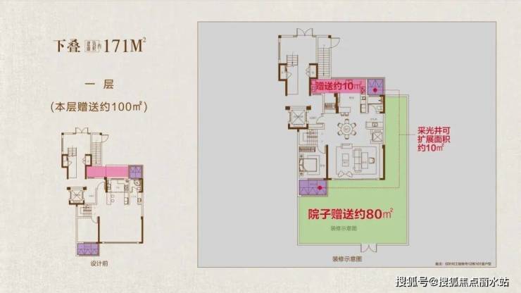 建筑面积约171㎡叠墅产品,以“大空间、大宽景、大格局”三重迭代设计,实现“层层可观景、户户有挑高”的空间布局,实际使用面积最大可达约370㎡,重新定义主城墅居改善标准。
