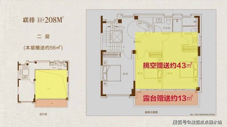 高附赠:地下室面积约108㎡,约 5.5 米挑高,可隔成两层,打造影音室、健身房、酒窖等多元功能区;一层餐客厅挑空,可拓展约43㎡赠送空间;二层、三层配备景观露台,阳台半赠送;四层星空露台全赠送,解锁生活多重想象。