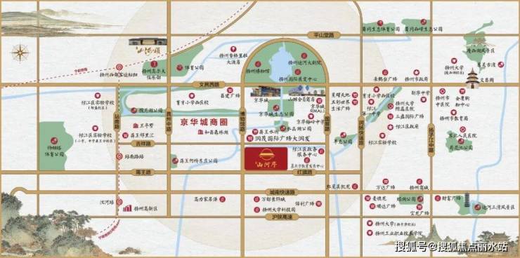 维投·山河序项目择址蒋王核芯,坐拥京华城、扬州山姆会员商店、蒋王大润发、润茂广场、蒋王水街、师姑塔体育公园、半岛公园等优质配套资源,构建起“繁华生活圈”与“自然谧境圈”的双重维度,以“三公里生活圈”,实现城市资源与生态基底的高效融合。