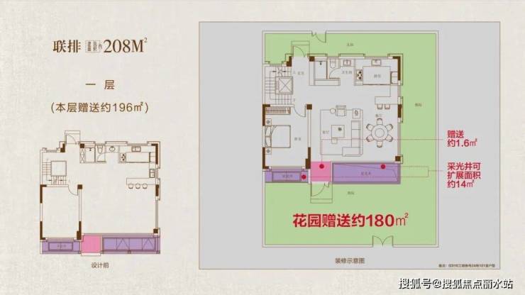 大花园:户均拥有约120㎡以上私属庭院,可打造花园、茶室或亲子活动空间,延伸生活诗意