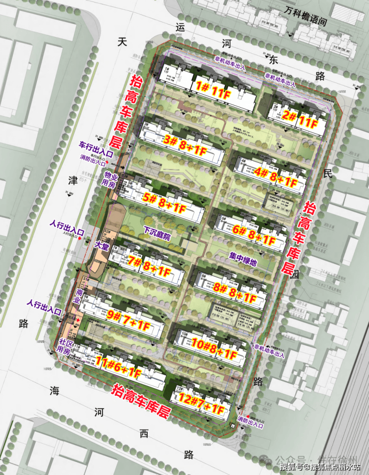 值得注意的是,规划图上标注:抬高车库层!抬板范围几乎为整个地块,也就是说,整个小区都架空起来!