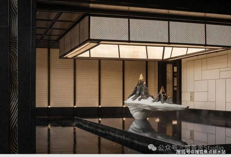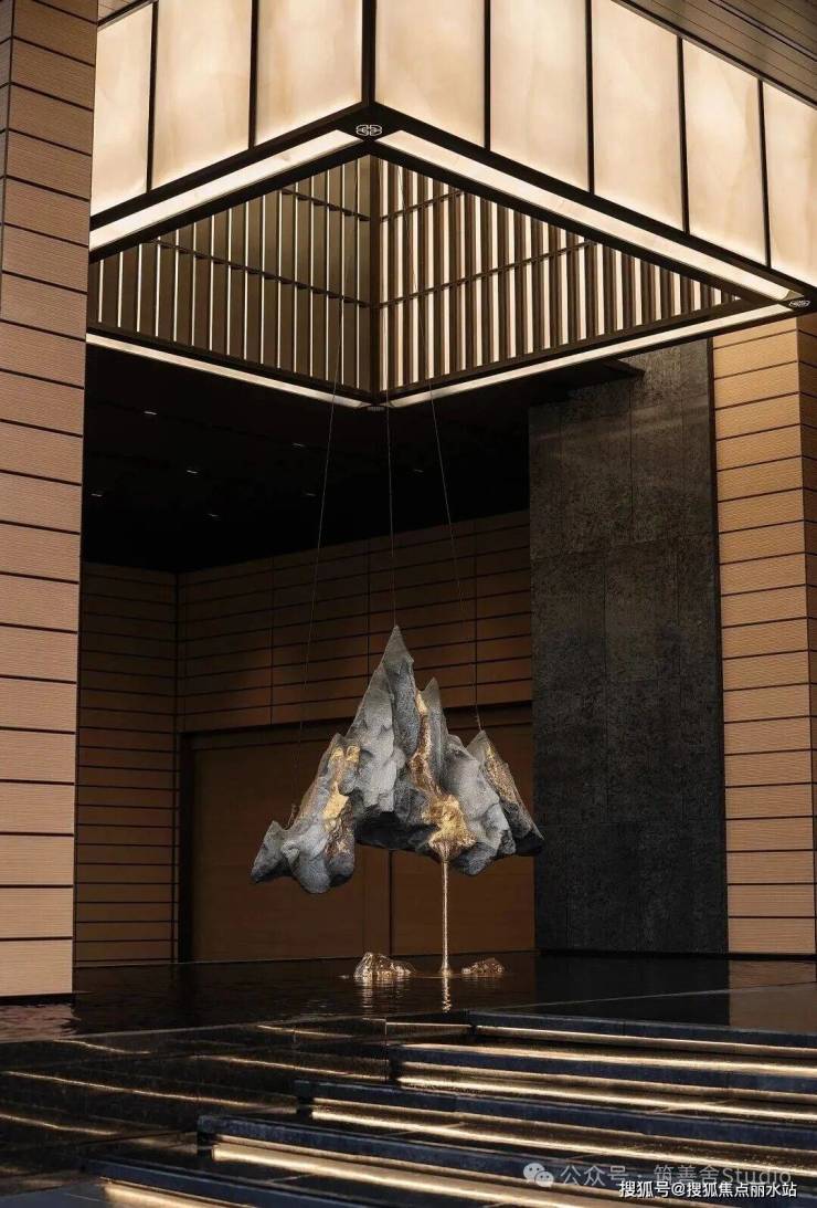 这座重达20吨的汉白玉山峰,与金箔装饰的“日照金山”相映成辉的雕塑,景致在眼前徐徐展开,每一寸金箔都凝聚着对自然盛景的精妙复刻。当目光追随雕塑的轮廓,匠人手工雕琢的曲线仿佛勾勒出云海翻腾的壮阔景象。在这里,“日照金山”造型的雕塑不再仅仅是独立的艺术品,它成为东吴原著与自然对话的桥梁,是居者与山野自然共情的纽带。