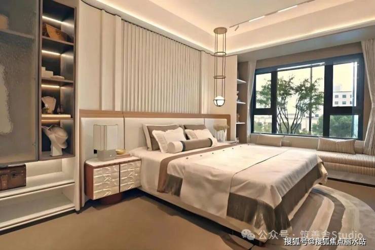 建筑立面萃取宋代美学神韵,以现代设计手法重塑传统风骨。线条简约流畅,横向舒展的形态与自然山水浑然一体。细节处理极尽精炼,从装饰纹样到屋檐轮廓,无不匠心独运,再现宋式雅致。材质搭配强调质感与色调的和谐统一,共同营造出古朴静谧的整体氛围。以清透灵动的浅米黄与沉稳内敛的高级灰为主色调,辅以古铜色金属细节点缀,营造精致雅致的视觉层次。空间设计强调通透流动感,巧妙将空中庭院与垂直绿化融入室内布局,打造自然与建筑和谐共生的沉浸式体验。