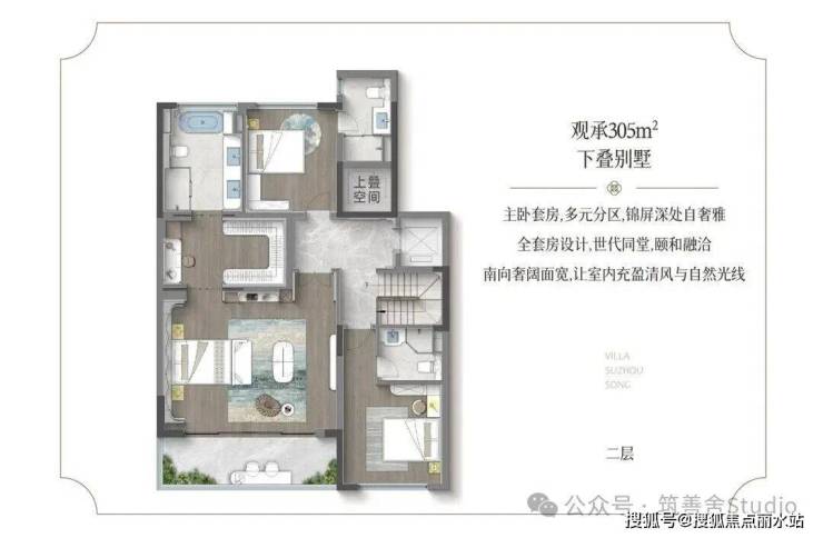 全盘仅259户,容积率1.3,是苏州中轴10年内仅有的低密墅区,打造大隐隐于市的藏品级墅作。项目涵盖建面约480-550㎡的联排、约220-335㎡的叠墅、约189㎡的空中院墅、约145㎡的空中平墅。