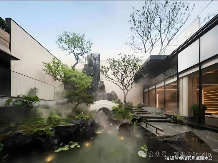 门外碧波荡漾,锦鲤嬉戏其间;拱桥巧妙复刻网师园“引静桥”之韵,三步过涧,步移景异。150吨巨石精心堆叠,造就8米高龙门叠瀑,气势恢宏;其间“鲤鱼石”灵动欲飞,仿佛跃过山峦,尽揽无限风光。