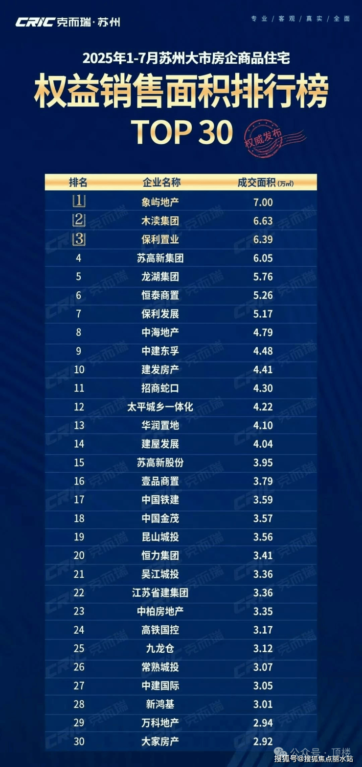 据克而瑞权威数据认证,2025年1 - 7月象屿地产在苏州大市房企商品住宅销售里,权益销售面积登顶第一。
