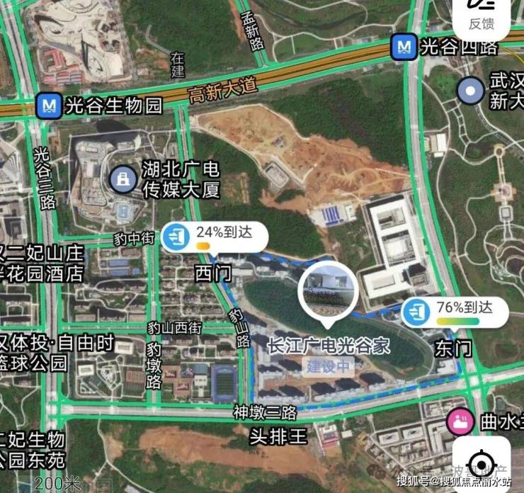 交通配套:最近的公交站光谷三路高新二路站约493米(373、787路)、最近地铁站光谷生物园站约651公里。(地图测量可能存在一定误差,均为直线距离)
